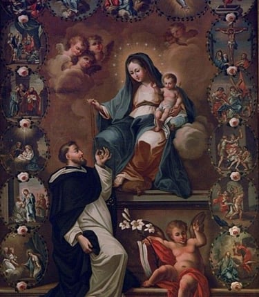 "Our Lady Gives the Holy Rosary to St. Dominic – A Heavenly Gift of Prayer"